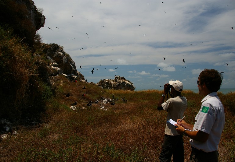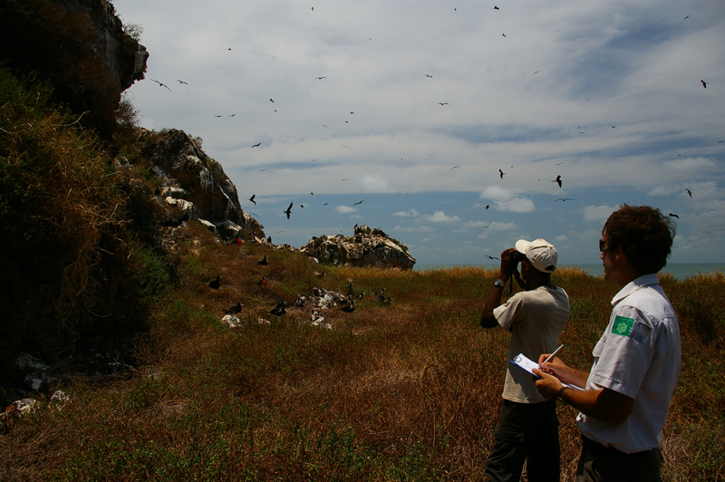 Les suivis scientifiques occupent également une part importante de l’activité de l’équipe. Ils concernent les espèces terrestres et marines, mais également les habitats. Réalisés par l’équipe de la Réserve ou en partenariat avec des chercheurs, ces suivis permettent de mieux comprendre le fonctionnement des écosystème de la Réserve et être ainsi plus efficace dans sa protection (comptage et baguage des oiseaux, marquage des Mérous géants…).