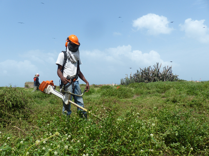 La morphologie actuelle de l’île a été façonnée par des décennies d’exploitation minière. Pour maintenir la place d’importance mondiale qu’occupe la Réserve pour certaines espèces d’oiseaux marins, l’équipe gestionnaire intervient donc sur les plateformes à sternes pour limiter la croissance de la végétation et permettre ainsi aux animaux de venir s’y installer à nouveau et sans encombre chaque année.
