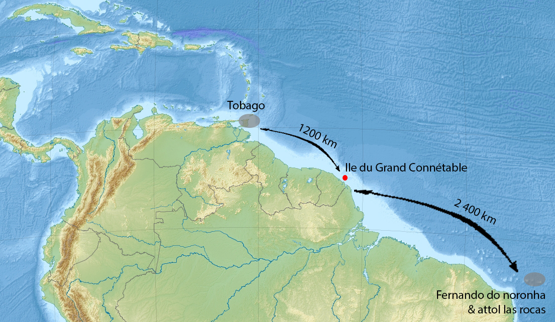 La Réserve Naturelle Nationale de l’Ile du Grand-Connétable est située en Guyane française sur le continent Sud américain. Émergeant à une quinzaine de kilomètres de l’embouchure du fleuve Approuague, l’Île du Grand-Connétable surprend par sa silhouette unique et le ballet de frégates en vol stationnaire. Sa morphologie actuelle a été façonnée par l’homme et représente aujourd’hui un sanctuaire pour les oiseaux marins et la biodiversité marine.