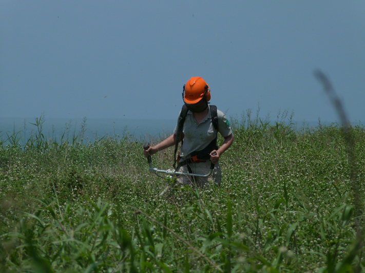 Pendant plusieurs années, l’équipe de la Réserve Naturelle a mis en place des opérations de débroussaillage pour mettre ce sol à nu avant l’arrivée des sternes. Cependant, il arrive qu’une repousse précoce de la végétation intervienne et limite le succès reproducteur des oiseaux. Les poussins se perdent dans les buissons rendant alors difficile le nourrissage par les parents.