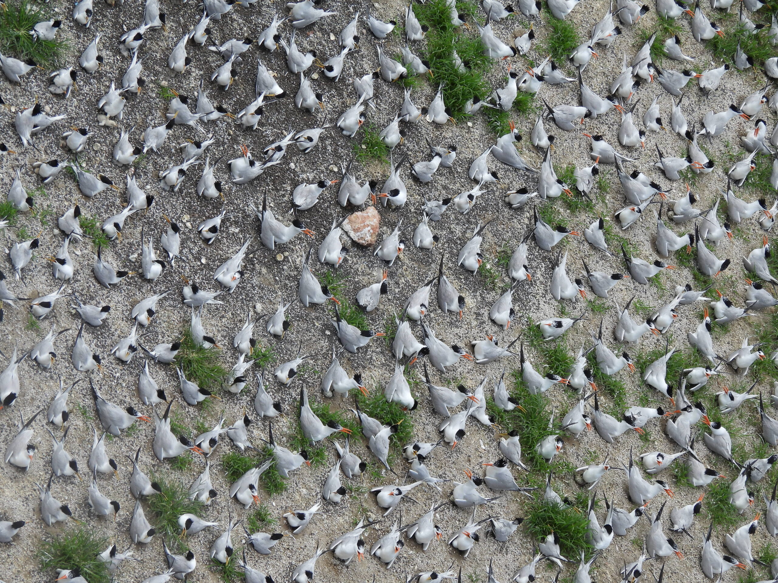Les sternes coloniales (S. de Cayenne, Thalasseus eurygnathus, et S. royale, Thalasseus maximus) représentent un enjeu de gestion et de conservation très important pour la Réserve. En effet, avec près de 30% de la population mondiale de Sternes de Cayenne, l’Ile du Grand-Connétable a une immense responsabilité pour maintenir des effectifs élevés de cette espèce.