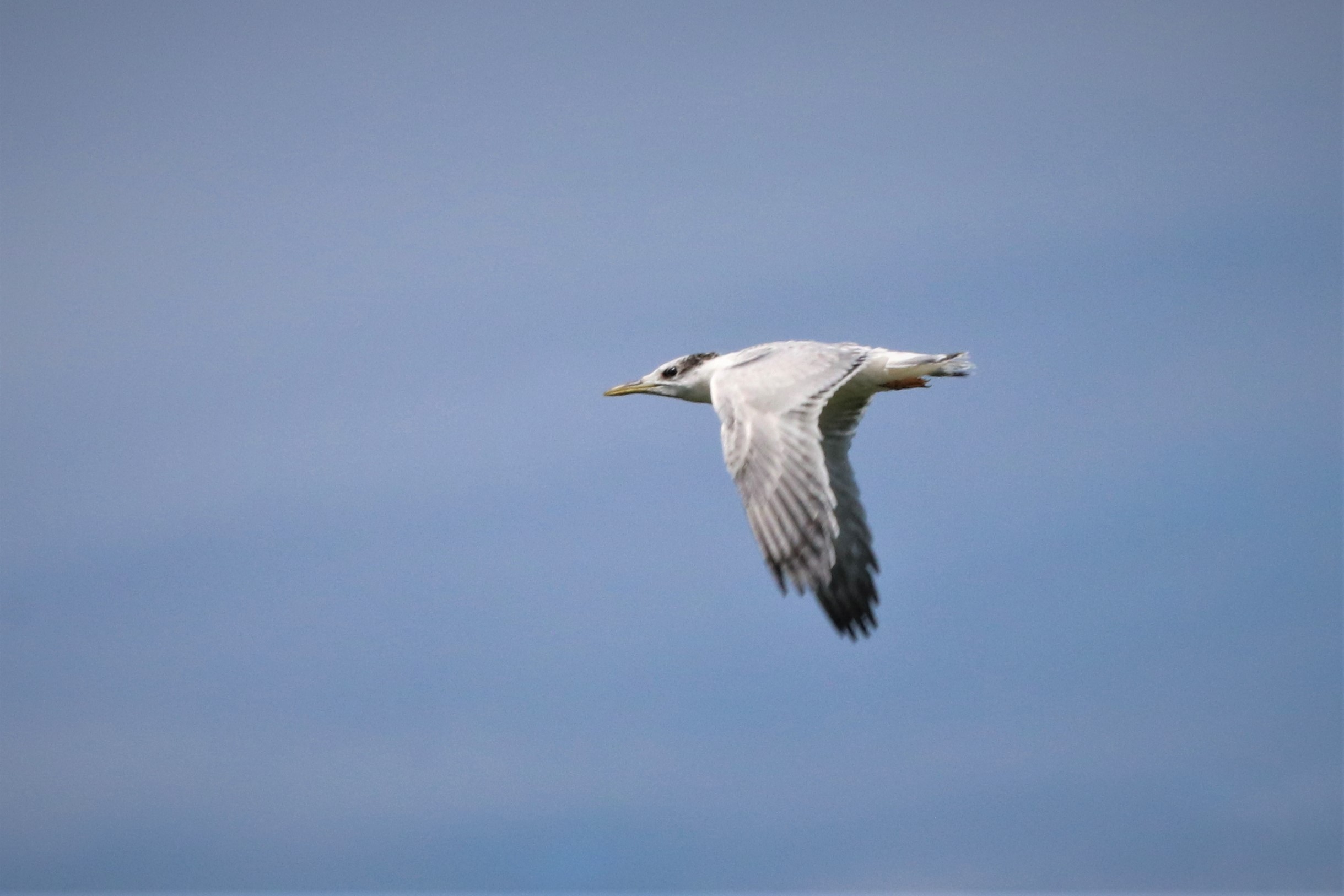 Cette photo illustre la première observation d’un poussin de Sterne de Cayenne en vol, né il y a quelques semaines sur l’île du Grand-Connétable. Ceci montre aussi que la reproduction des Sternes de Cayenne et des Sternes royales a été un succès cette année.
