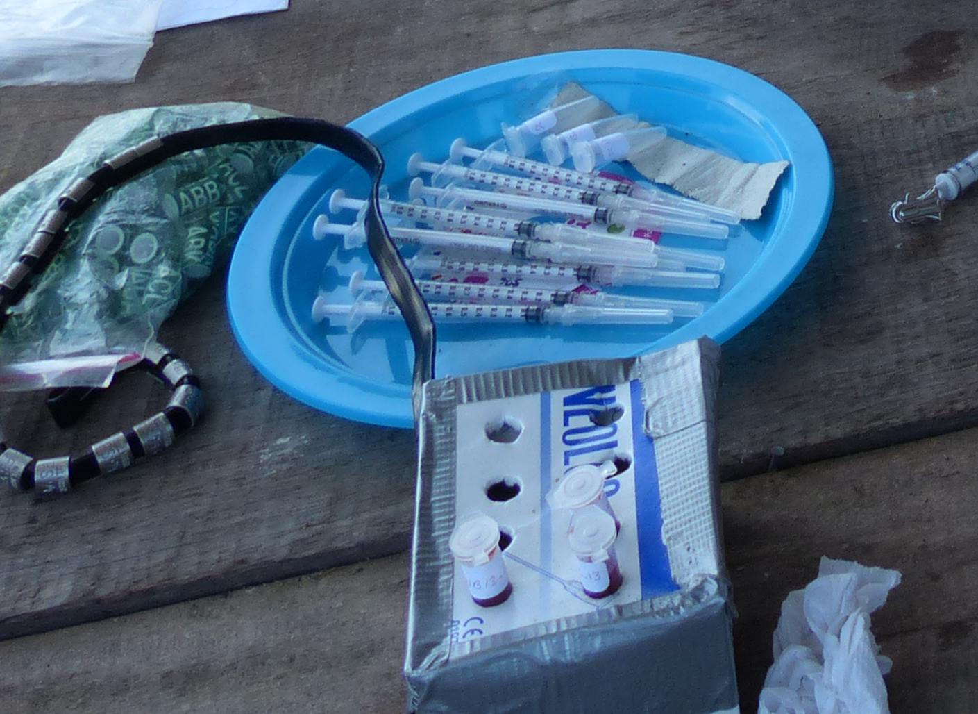 Dans la lettre d’informations de la Réserve d’août 2013, nous relations la présence de scientifiques réalisant des prélèvements sanguins sur les oiseaux nicheurs. Ces prélèvements effectués par Olivier Chastel (CEBC/CNRS) et Paco Bustamante (LIENSs) avait pour but d’évaluer le taux de contamination des espèces en métaux lourds et en polluants persistants organiques. Les premiers résultats de cette étude concernent la contamination par le mercure. Trois espèces (Frégate superbe, Sterne royale et Mouette atricille) présentent des taux de contamination élevés avec un maximum pour la Frégate superbe. A l’inverse, les trois autres espèces (Noddi brun, Sterne fuligineuse et Sterne de Cayenne) présentent des taux de contamination moindre. Cette différence entre groupes semble s’expliquer par le comportement alimentaire des espèces, les plus contaminées se nourrissent près des côtes tandis que les moins contaminées se nourrissent au large. Pour les trois espèces les plus contaminées, nous observons des niveaux proches de ceux observés en zone subantarctique et nettement plus élevés que ceux d’une autre communauté tropicale. Doit-on s’inquiéter des niveaux de mercure des oiseaux marins nicheurs de Guyane? Oui, car pour la majorité des espèces du Grand Connétable les niveaux de contamination sont supérieurs ou équivalents à ceux pour lesquels des effets négatifs (physiologie, reproduction) sont connus. D’autres questions se posent désormais, notamment sur l’origine de cette contamination en mercure et quelle est la part d’origine humaine, sur les conséquences du mercure sur la biologie des espèces nicheuses. De nouvelles pistes de recherches à approfondir.